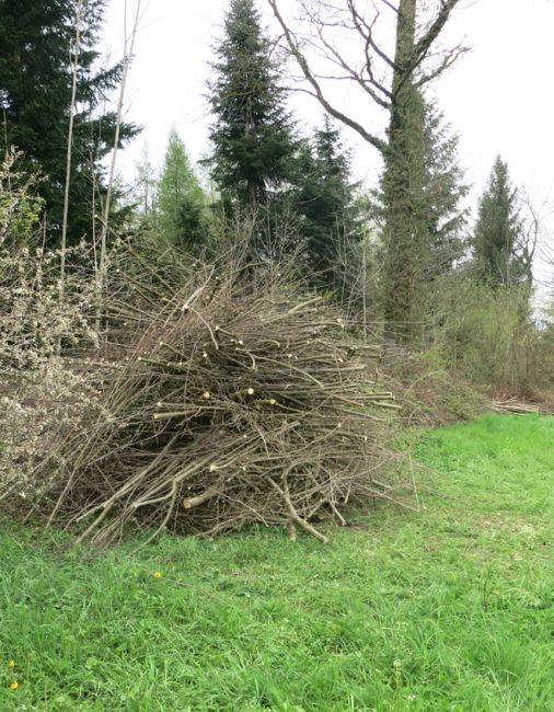 Die Verwertung des Schnittguts in Form von Hackschnitzeln ist somit in vielerlei Hinsicht ideal. Das Ausbringen von Hackschnitzeln entlang von Hecken ist hingegen nicht vorteilhaft – in diesem Fall ist es besser, die Äste aufzuschichten.