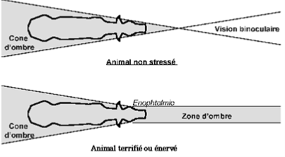 La vache perçoit très bien les mouvements mais de façon saccadée, ce qui peut l’effrayer s’ils sont trop brusques. Son oeil s’adapte lentement aux changements de lumière. Raison pour laquelle elle peut avoir peur en sortant de la bétaillère ou à l’entrée de la salle de traite par exemple. Pour ce qui est des couleurs, la vache distingue très bien le bleu. En revanche, les teintes de rouge sont moins bien différenciées. Prenons l’exemple de la corrida avec son torero qui agite sa muleta rouge. Ce n’est pas la couleur qui excite le taureau, mais bien les gesticulations du torero. Un autre aspect à mettre en avant est le fait que la vache est un animal de fuite. Lorsqu’elle est apeurée, elle fuit et sa vision binoculaire devient zone d’ombre.