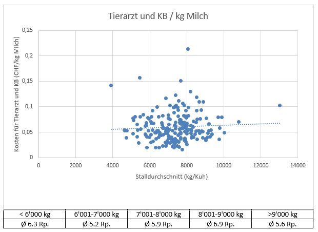 Die folgende Grafik zeigt die Tierarztkosten und die Besamungskosten pro Kilogramm Milch.