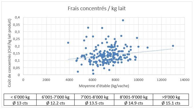 Tableau 1: Frais de concentrés par kilo de lait en fonction de la moyenne d’étable.