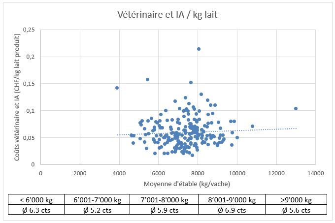 Le graphique suivant présente les frais vétérinaires et les frais d’insémination par kilo de lait.