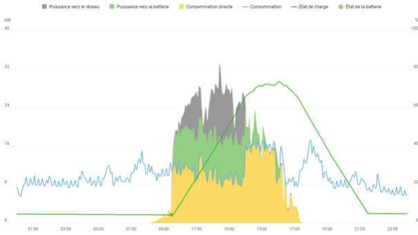 © Grangeneuve Exemple de déroulement journalier d’une installation PV en combinaison avec une batterie