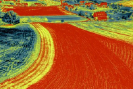 Les surfaces rouges sur l’image thermique sont les toits et